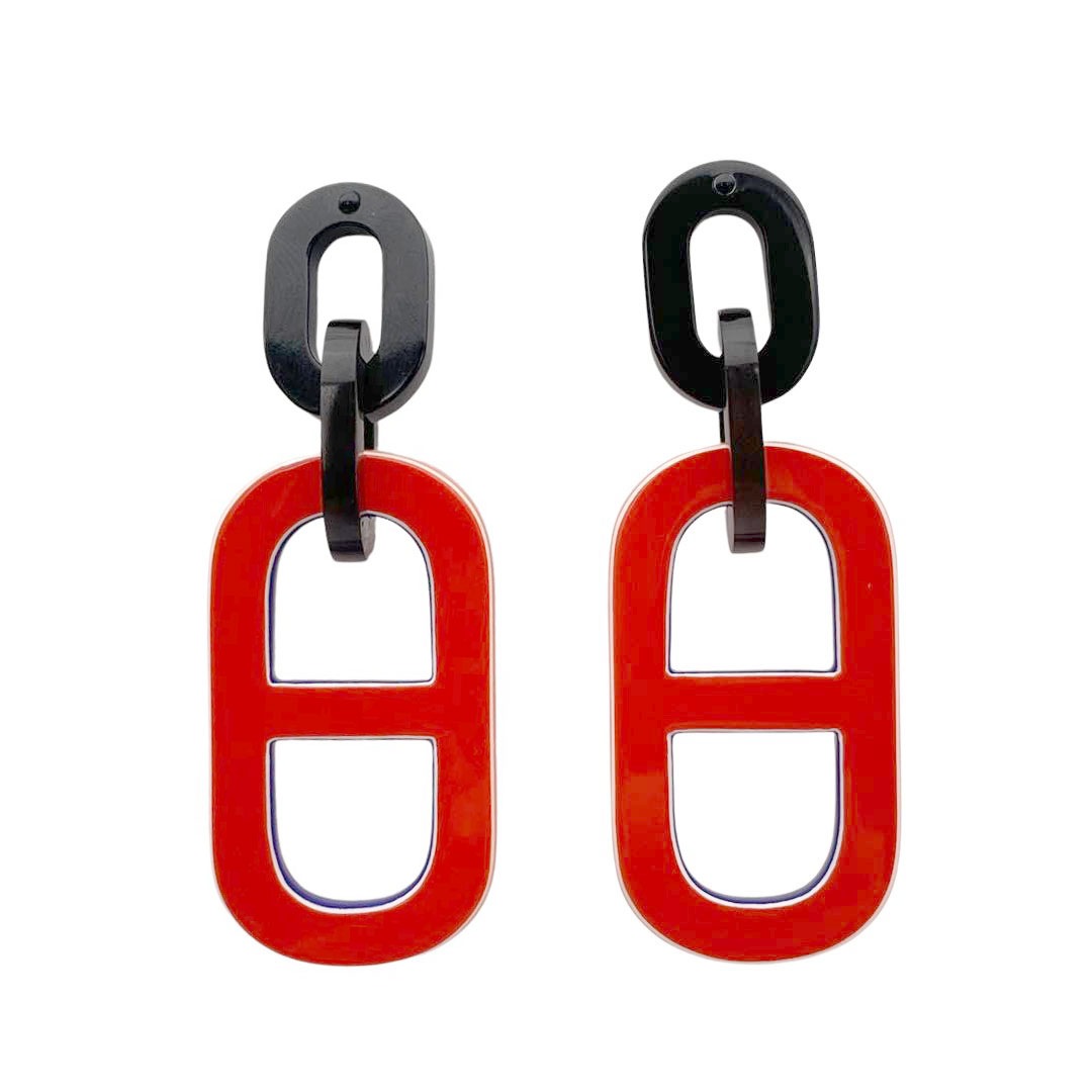 HERMES エルメス ピグマン ピアス シェーヌダンクル 馬蹄 ラッカーウッド バッファローホーン オレンジ/ピンク系