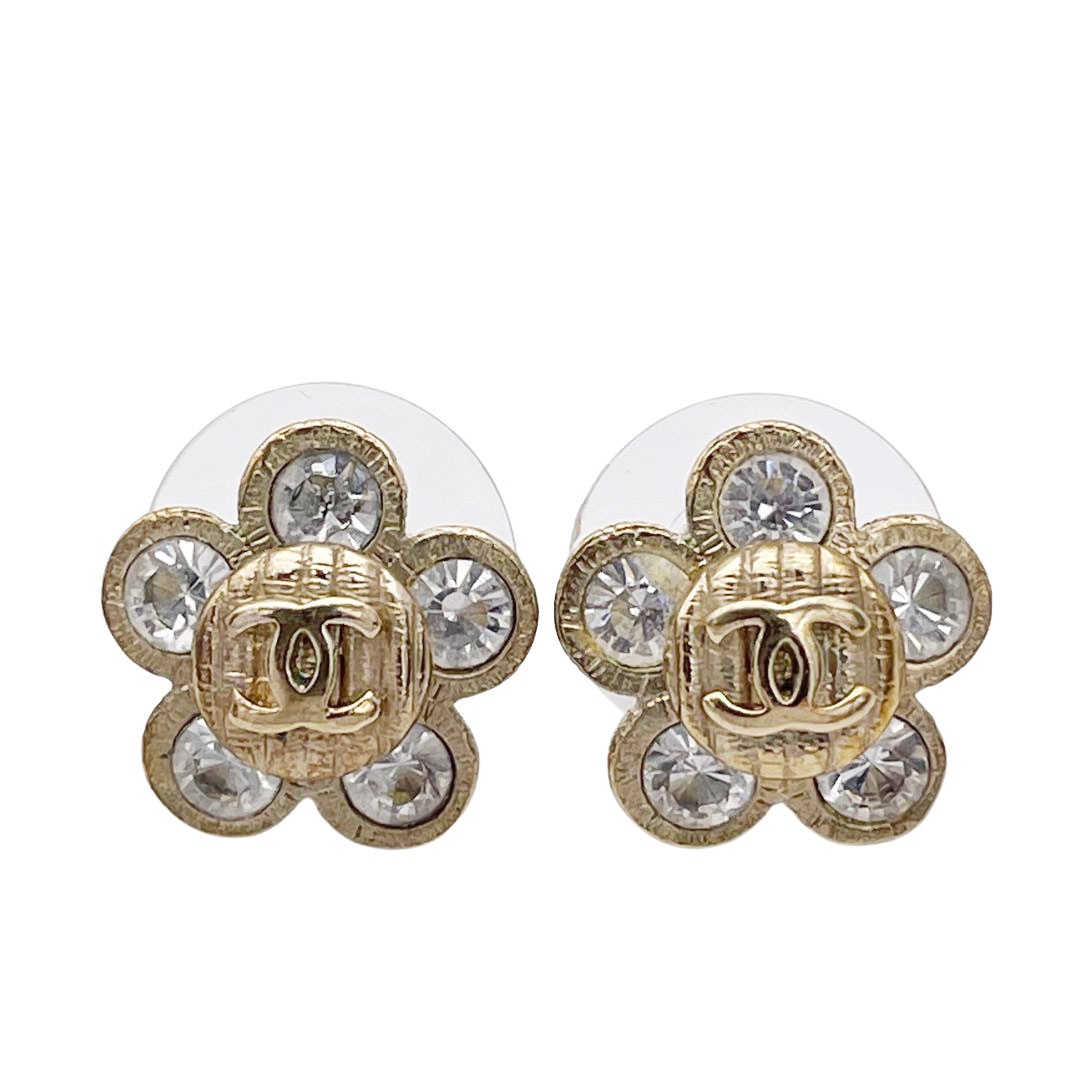 CHANEL シャネル フラワーピアス ココマーク ラインストーン 07A シャンパンゴールド