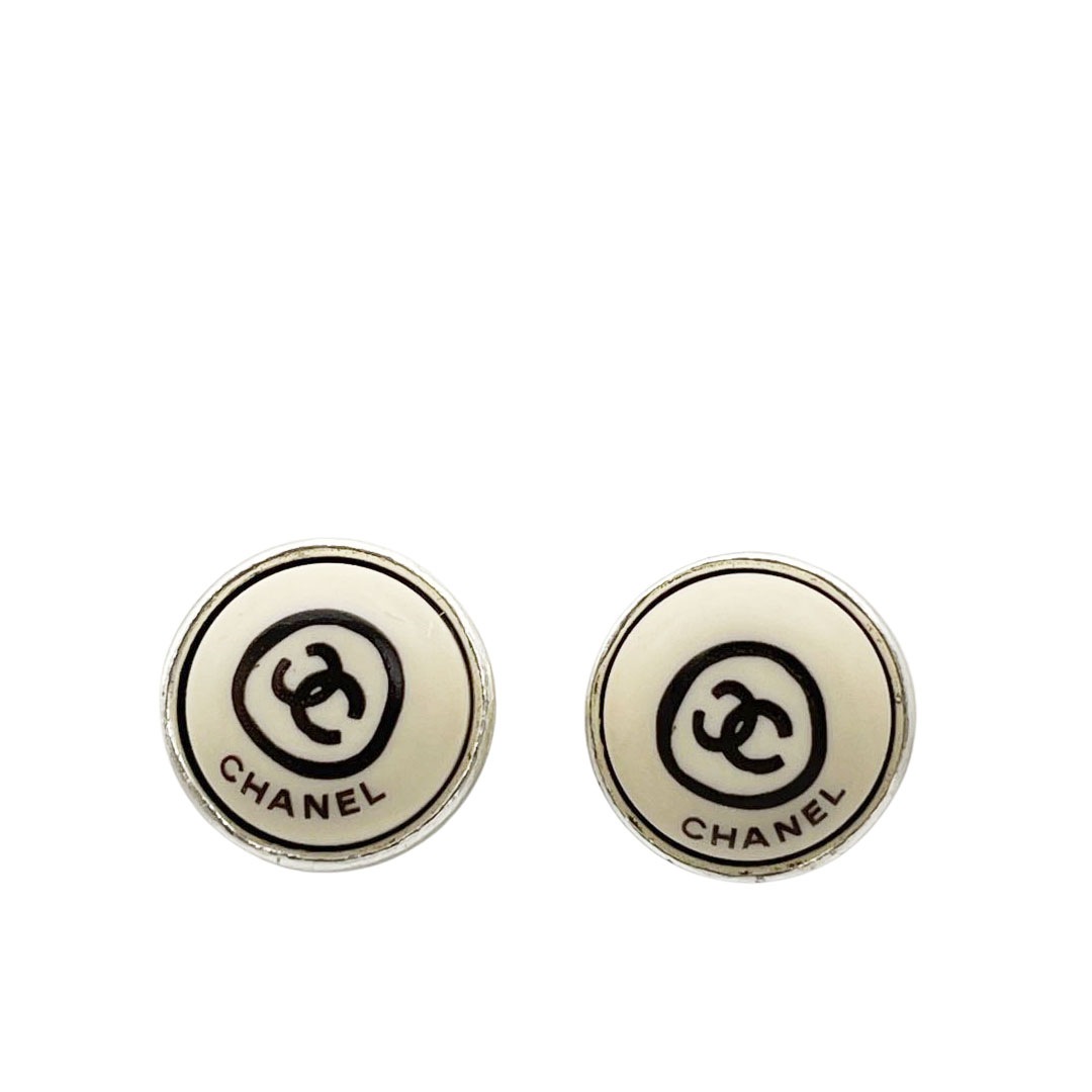 CHANEL シャネル ラウンドピアス ココマーク 手書き風 ベージュ シルバー 00T