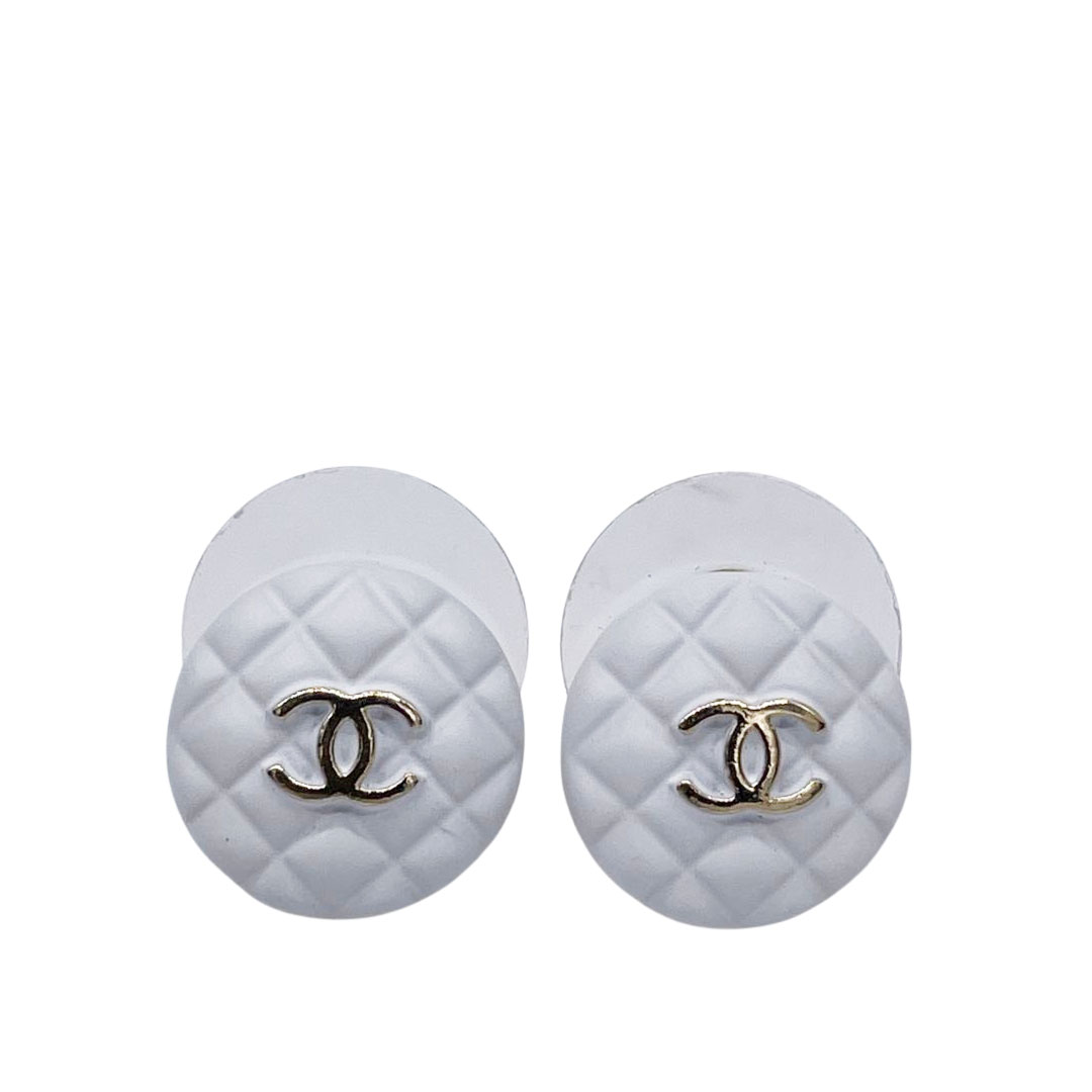 CHANEL シャネル ラウンドピアス マトラッセ ココマーク レジン/真鍮 A19C ホワイト ゴールド AB0747