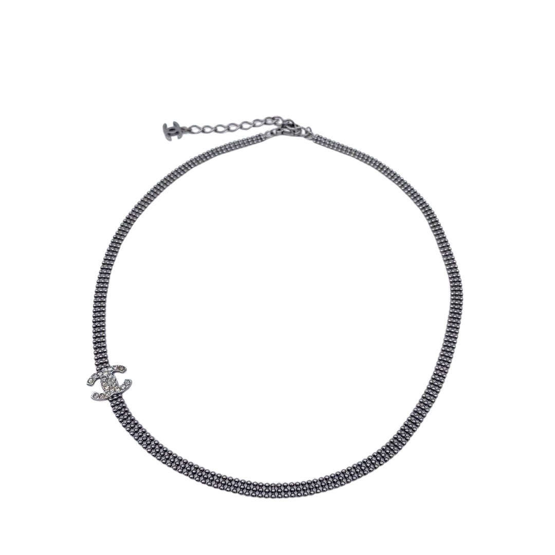 CHANEL シャネル チョーカーネックレス ココマーク ラインストーン 06A ガンメタシルバー