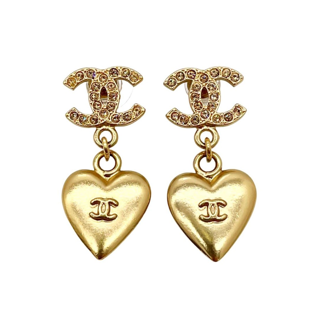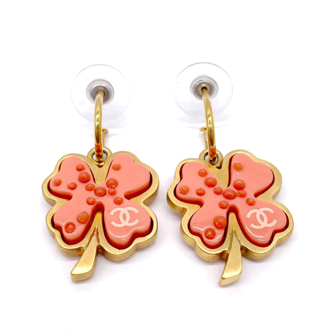 CHANEL シャネル ピアス ココマーク ラインストーン シャンパンゴールド レッド オレンジ 06P