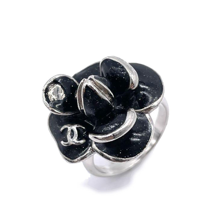 CHANEL シャネル フラワーリング 指輪 ココマーク メタル エナメル 02S ゴールド/ブラック 約13号