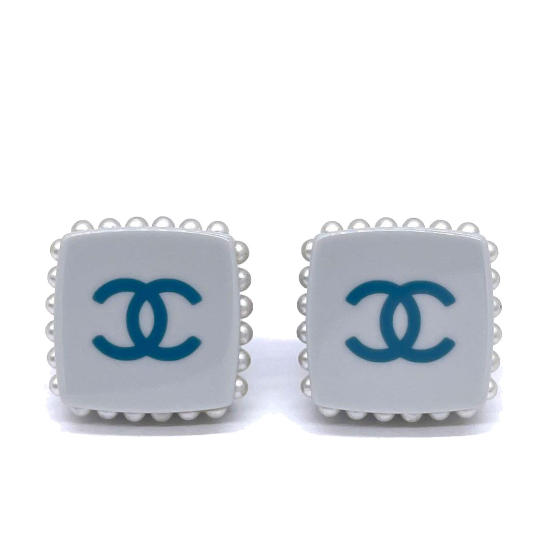 CHANEL シャネル ラウンドピアス マトラッセ ココマーク レジン/真鍮 A19C ホワイト ゴールド AB0747