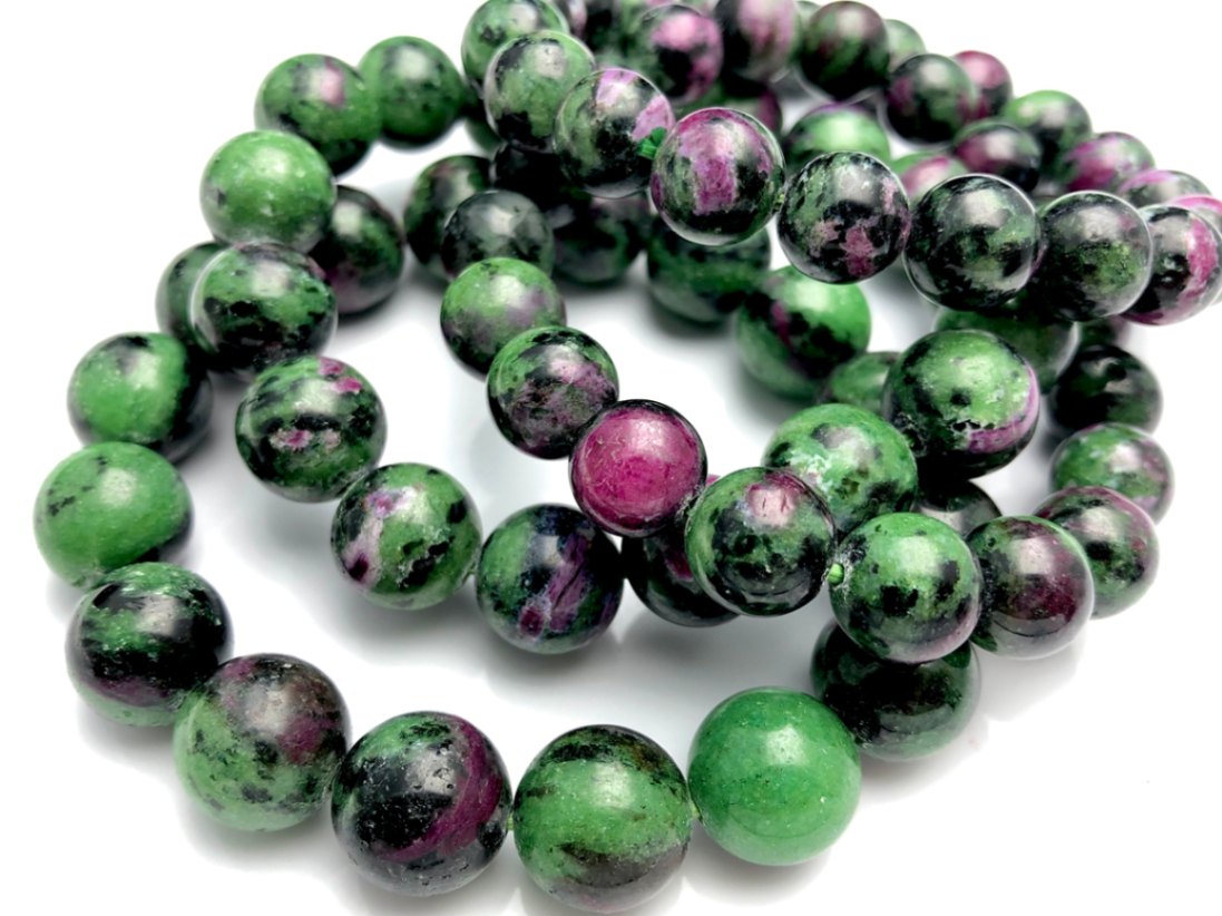 鮮やかな発色★天然石ブレスレット/ルビーインゾイサイト(アニョライト/Ruby in zoisite)/ラウンド/約10mm/1本...