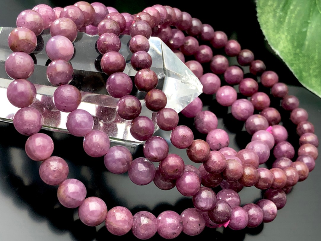 【1点もの】宝石の女王ルビー★濃厚発色!★天然石ブレスレット/スタールビー(ruby・鋼玉・紅玉)/プレーンボタンカット/約6mm...