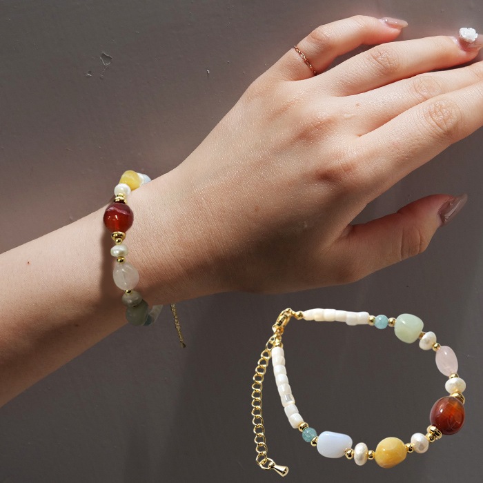 ストーンブレスレット カーネリアン ローズクォーツ シトリン 淡水パール シェル 約16.5cm SUS316 サージカルステンレ...