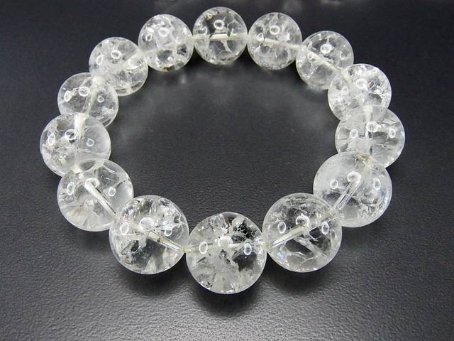 石街AAAホワイトクラック水晶超大約16mm天然石ブレスレット数珠