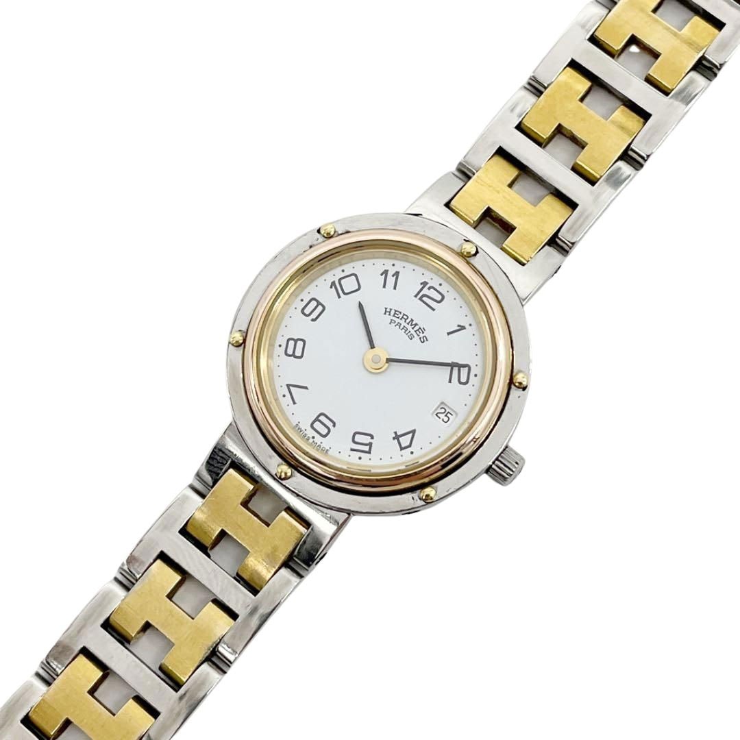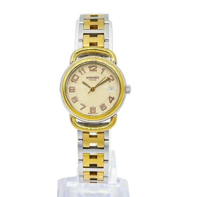 HERMES エルメス レディース腕時計 クロアジュール QZ SS コンビ ゴールド シルバー 白文字盤