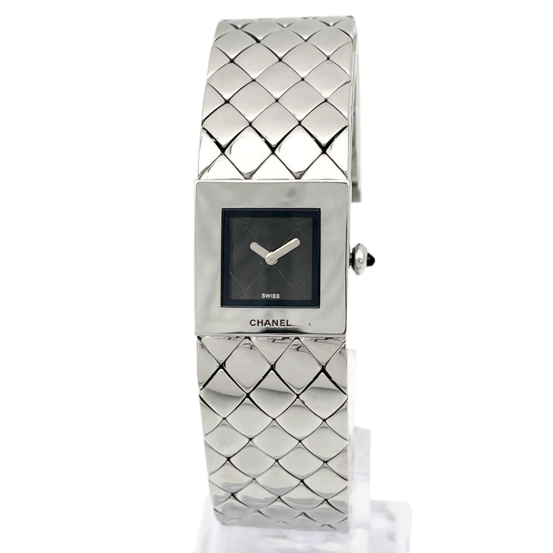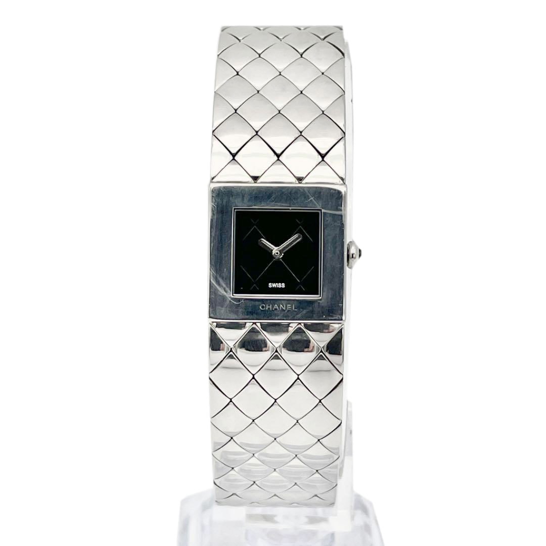 CHANEL シャネル レディース腕時計 マトラッセ QZ シルバー 黒文字盤 H0009