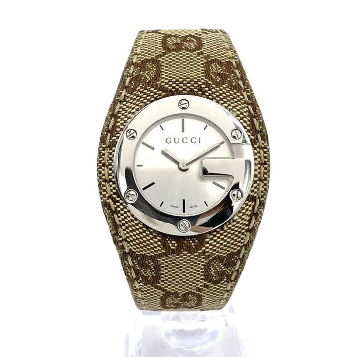 GUCCI グッチ レディース腕時計 Gバンデュー ブレスウォッチ GGキャンバス ブラウン シルバー 104