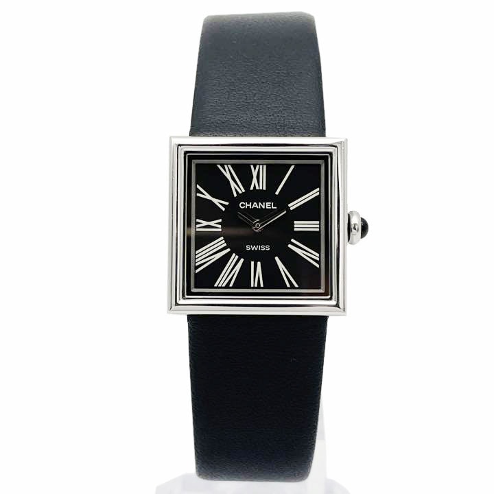 CHANEL シャネル レディース腕時計 マドモアゼル QZ シルバー ブラック 黒文字盤 H0826