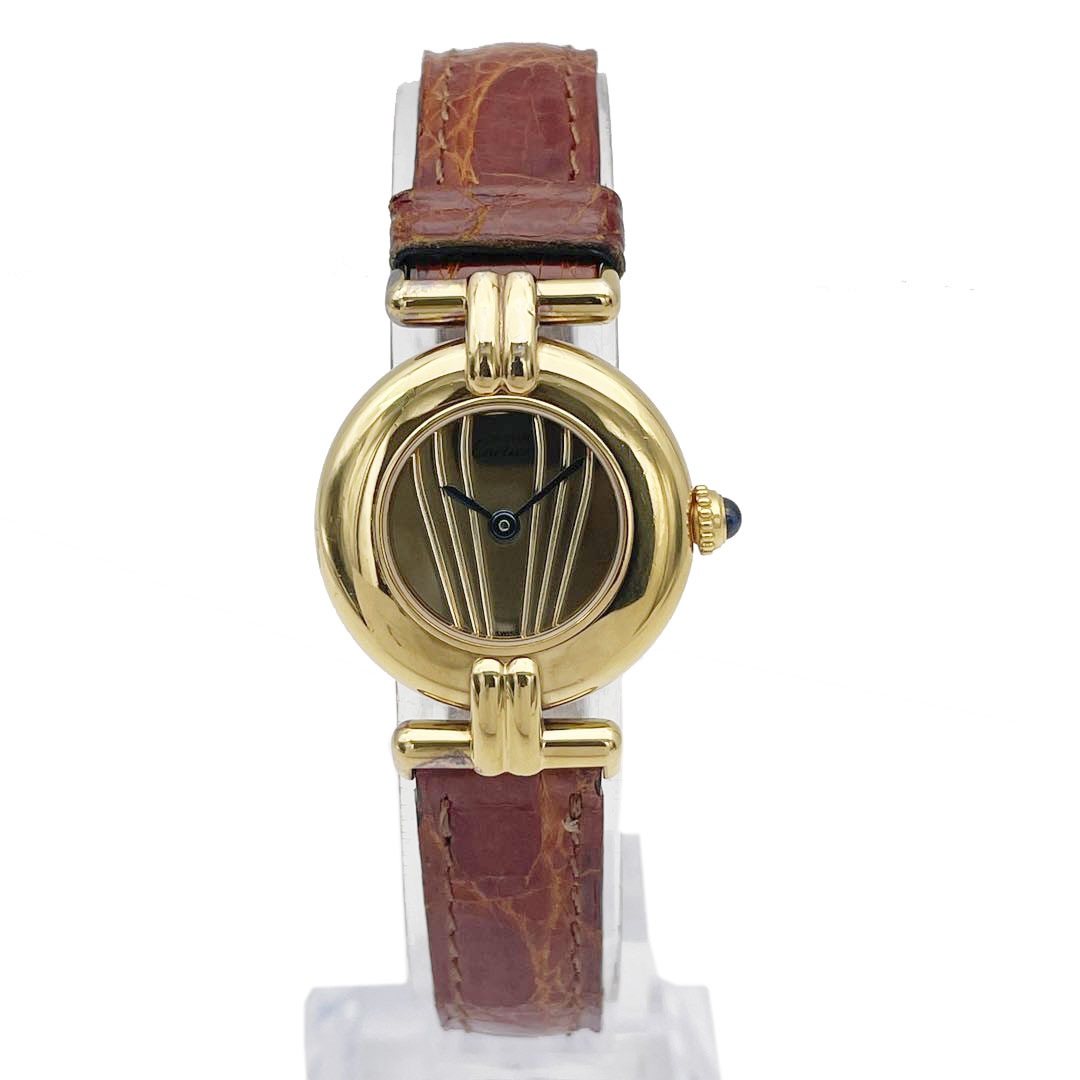 Caritier カルティエ レディース腕時計 マストコリゼ ミラーダイアル QZ 925 GP レザーベルト ゴールド ブラウン