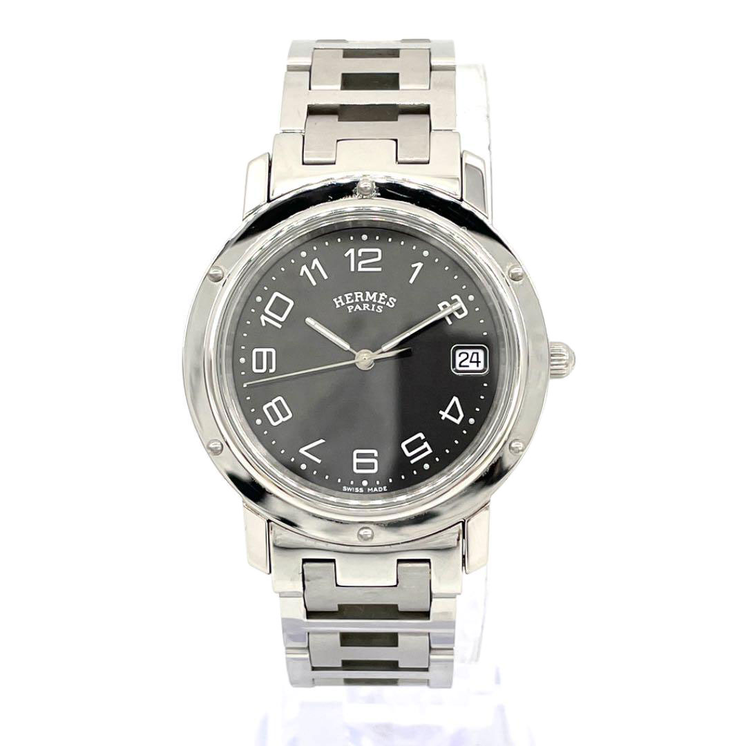 HERMES エルメス メンズ腕時計 クリッパー QZ シルバー 黒文字盤 CL6.710