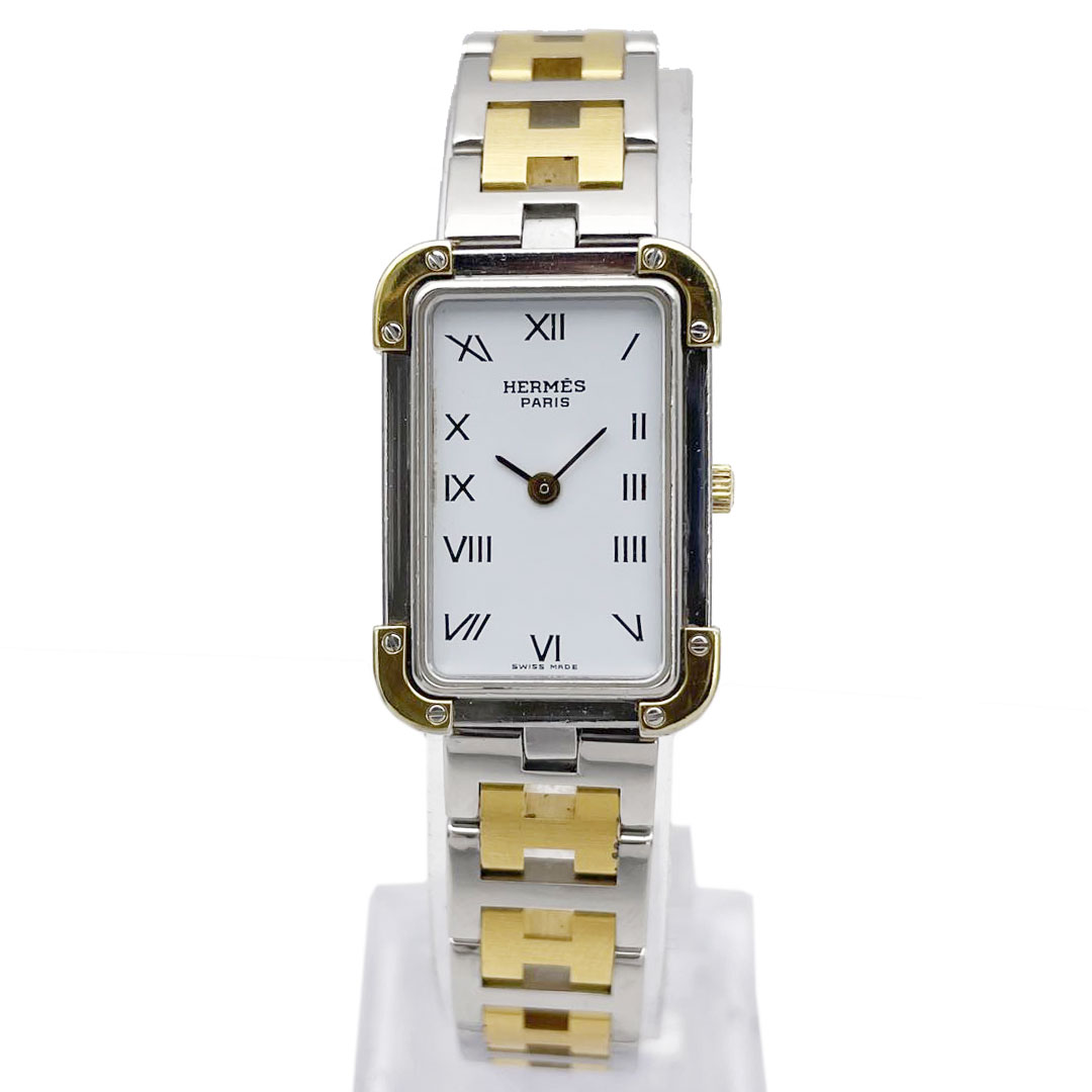 HERMES エルメス レディース腕時計 キャプテンニモ デイト クォーツ コンビ シルバー ゴールド 白文字盤