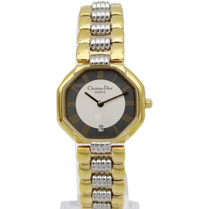 Christian Dior クリスチャンディオール レディース腕時計 オクタゴン デイト QZ ゴールド シルバー コンビ D4...