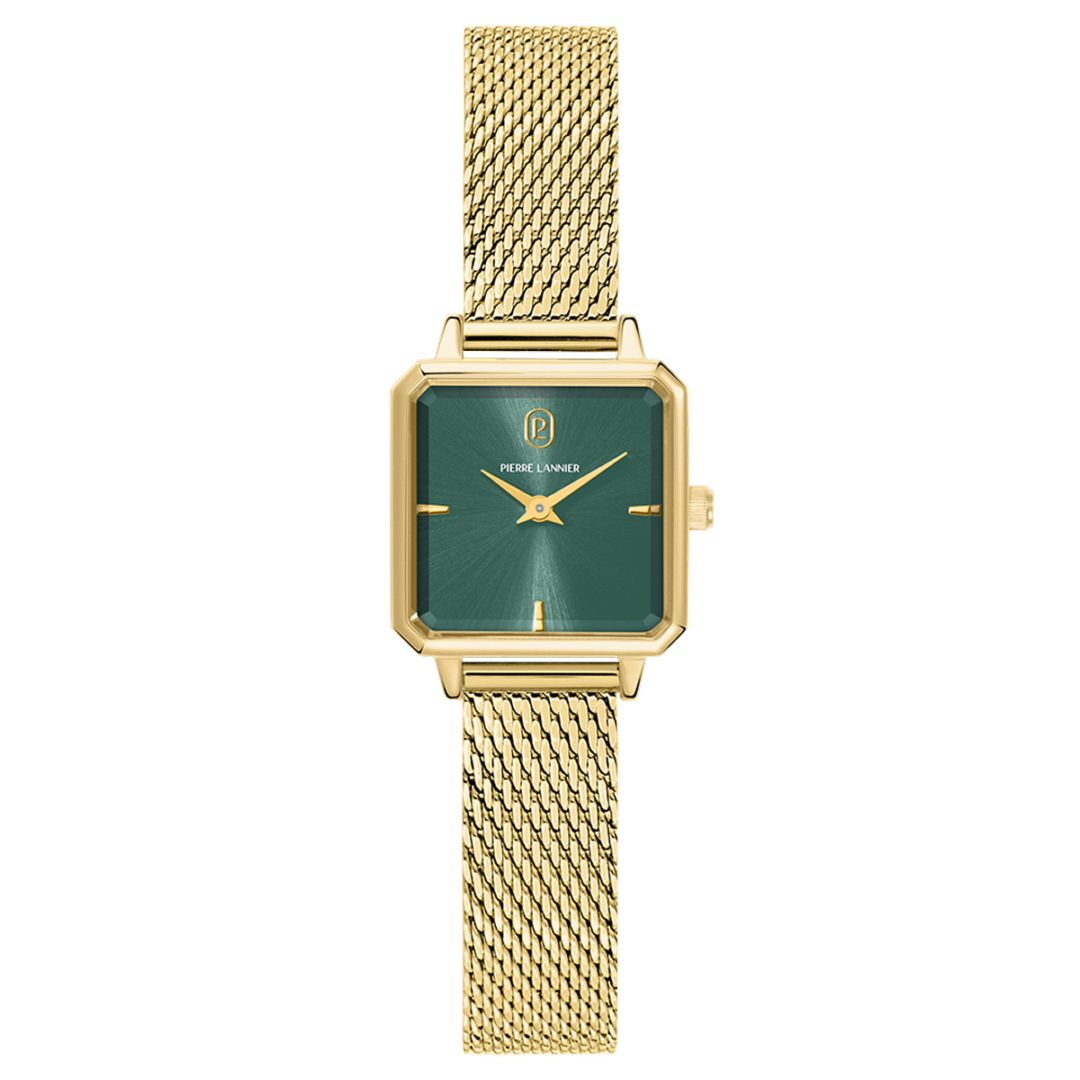 LEONOR レオノール レディース 腕時計 クオーツ 金属ベルト スクエア メッシュ ゴールド グリーン 文字盤