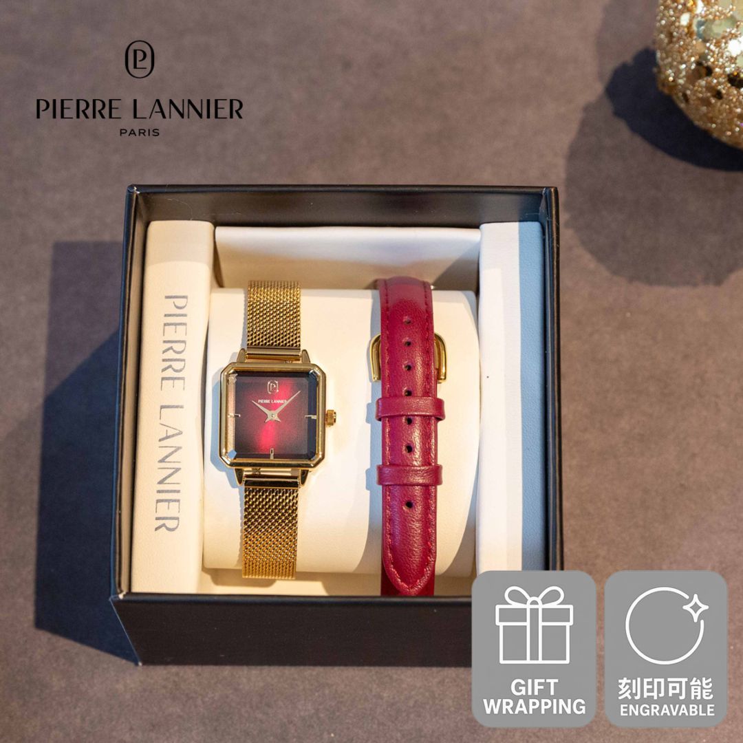LEONOR レオノール ベルトセット レディース 腕時計 クオーツ 金属ベルト 革ベルト スクエア ゴールド ボルドー 文字盤
