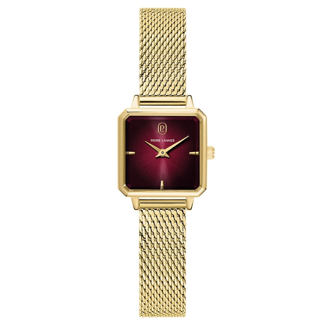LEONOR レオノール レディース 腕時計 クオーツ 金属ベルト スクエア メッシュ ゴールド ボルドー 文字盤