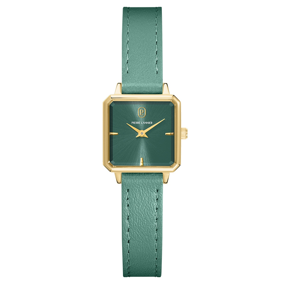 LEONOR レオノール レディース 腕時計 クオーツ 革ベルト スクエア ゴールド グリーン 文字盤