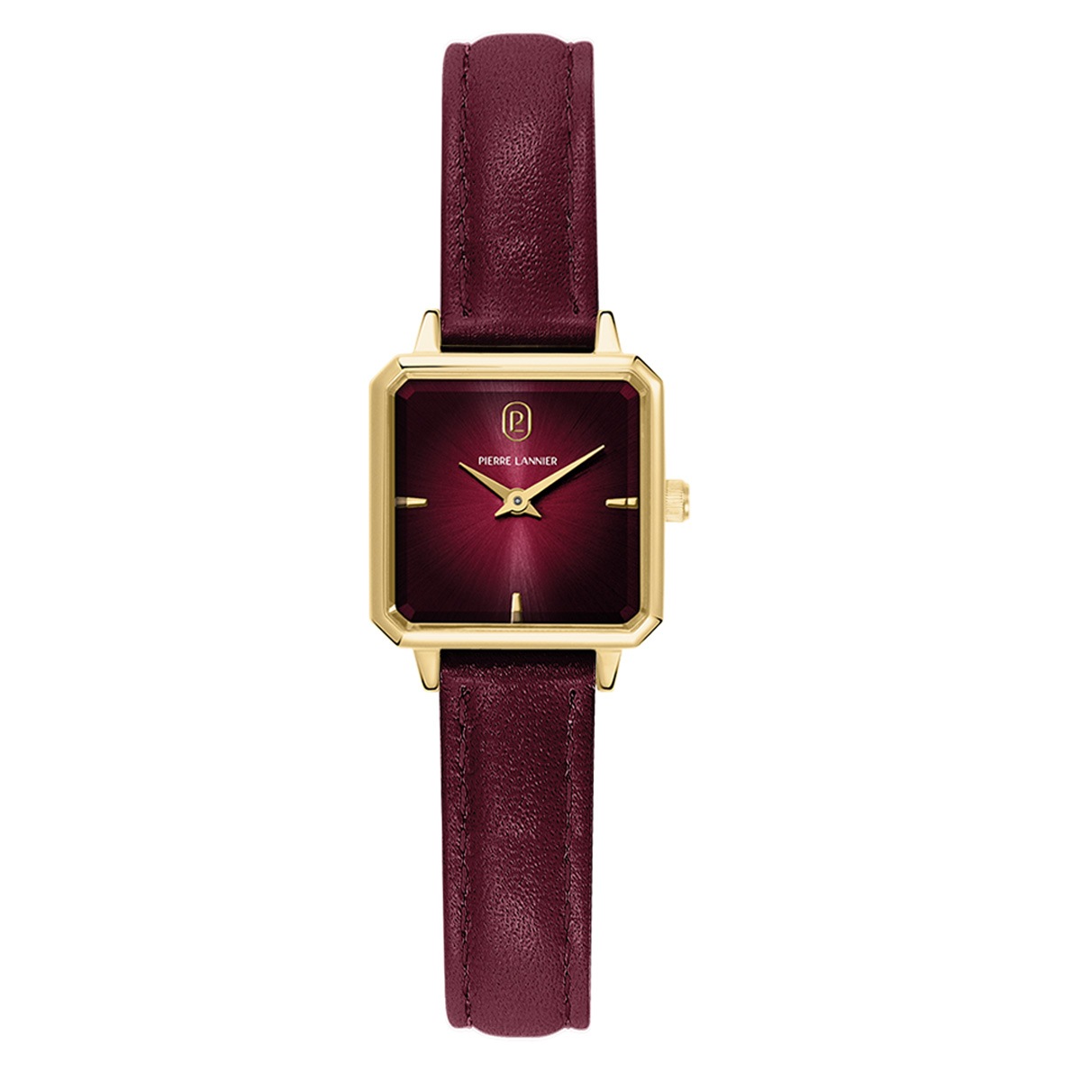 LEONOR レオノール レディース 腕時計 クオーツ 革ベルト スクエア ゴールド ボルドー 文字盤