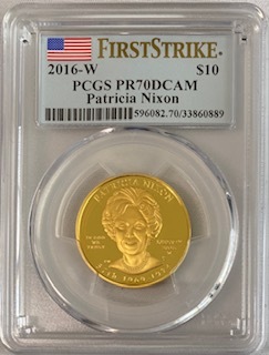 【動画あり】2016-W 10ドル金貨 パトリシア・ニクソン $10 PCGS PR70DCAM (First Strike)