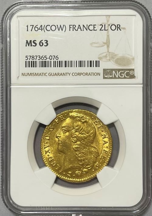 【動画あり】フランス 1764-COW年 ルイ15世 2ルイドール金貨 NGC-MS63