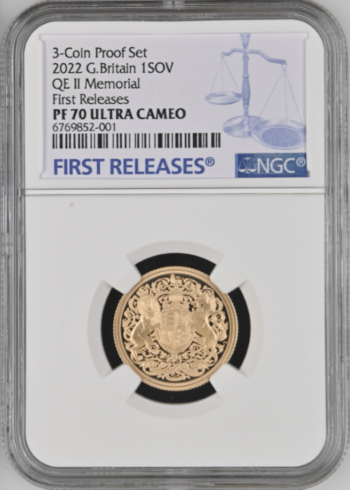 【動画あり】グレートブリテン 2022年 エリザベス2世 メモリアルソブリン プルーフ3枚セットNGC-PF70UCAMファースト...