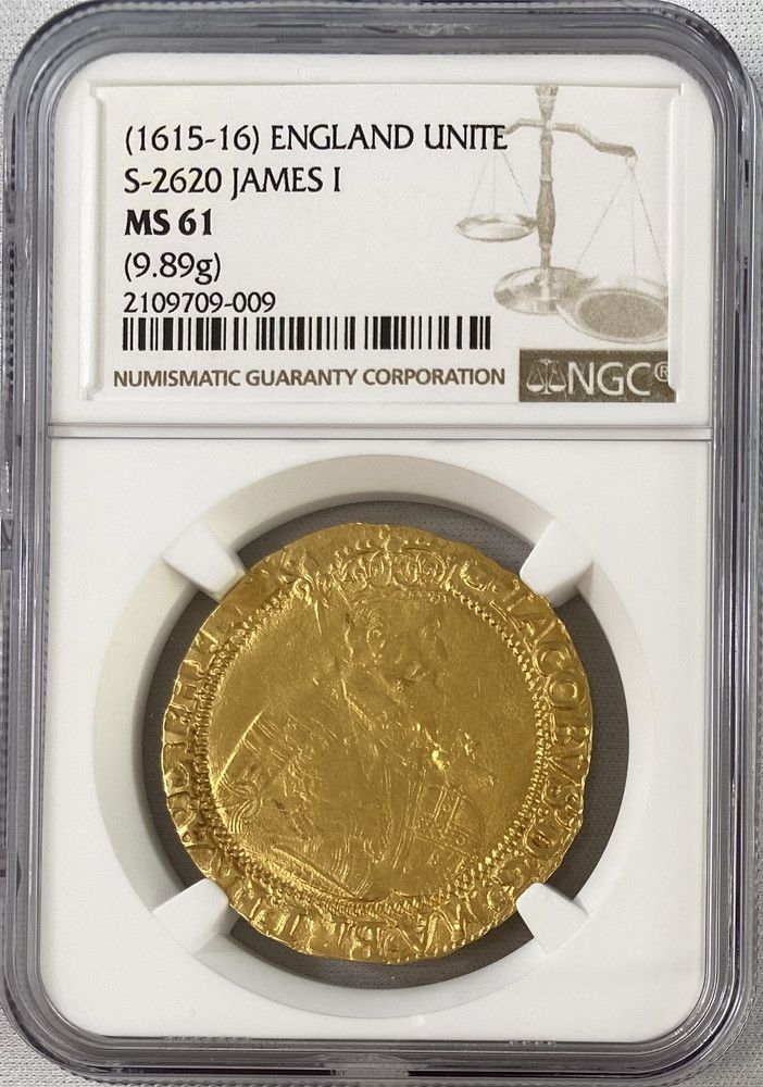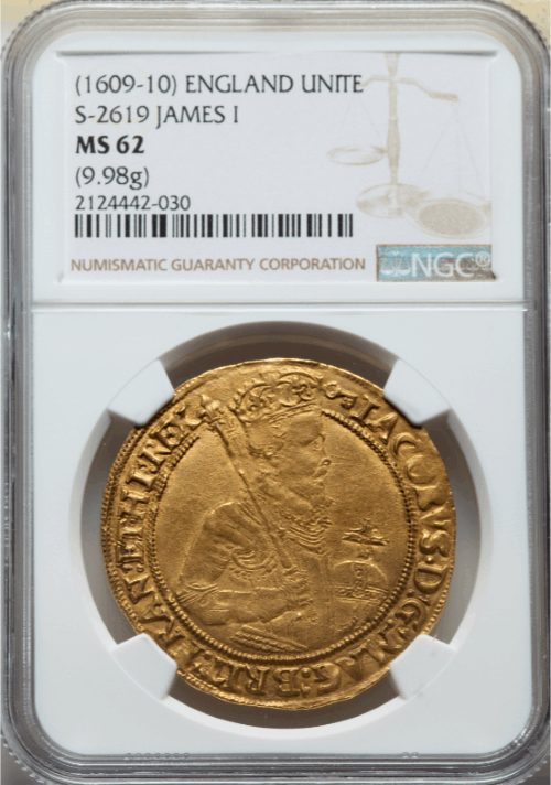 【動画あり】グレートブリテン 1609-10年 ジェームズ1世 ゴールド・ユナイト金貨 NGC-MS62