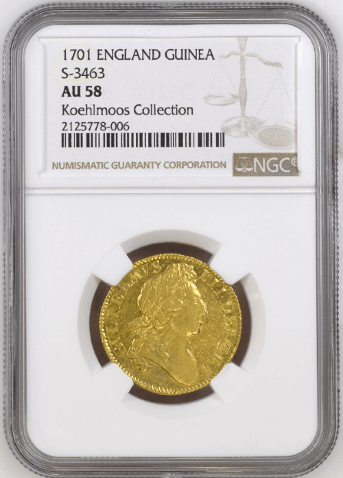 【動画あり】グレートブリテン 1701年 ウイリアム3世 1ギニー金貨 NGC-AU58