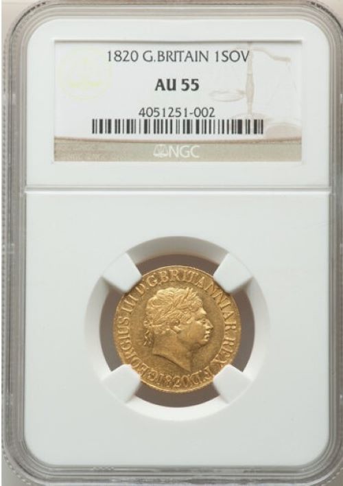 【動画あり】グレートブリテン ジョージ3世 1820年 ソブリン金貨 NGC-AU55