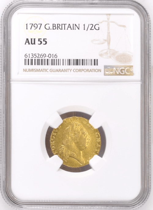 【動画あり】グレートブリテン 1797年 ジョージ3世 1/2ギニー金貨 NGC-AU55