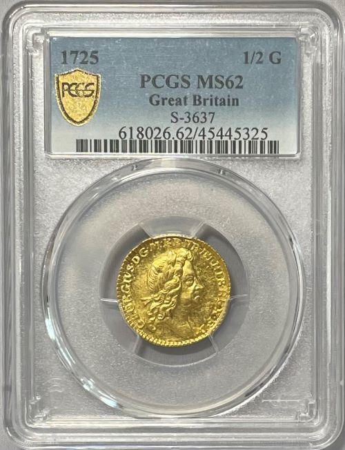 【動画あり】グレートブリテン 1725年 ジョージ1世 1/2ギニー金貨 PCGS-MS62 Augustana Collecti...