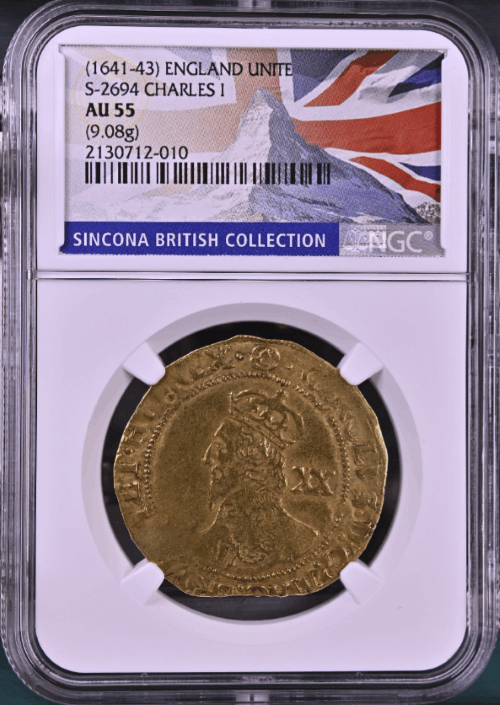 【動画あり】グレートブリテン チャールズ1世(1641-1643) ゴールド・ユナイト(20シリング)金貨NGC-AU55