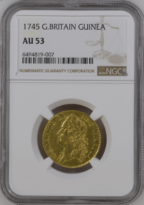 【動画あり】グレートブリテン 1745年 ジョージ2世 1ギニー金貨 NGC-AU53
