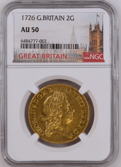 グレートブリテン 1726年 ジョージ1世 2ギニー金貨 NGC-AU50 Augustana Collection