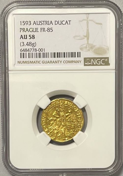 アンティークコイン オーストリア(ボヘミア) 1593年 神聖ローマ皇帝 ルドルフ2世 1ダカット金貨 NGC-AU58 Augu...