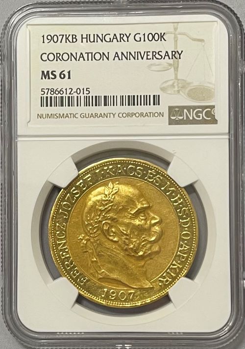 【動画あり】ハンガリー 1907-KB年 フランツ・ヨーゼフ1世 100コロナ金貨 コロネーション・アニヴァーサリー NGC-MS...