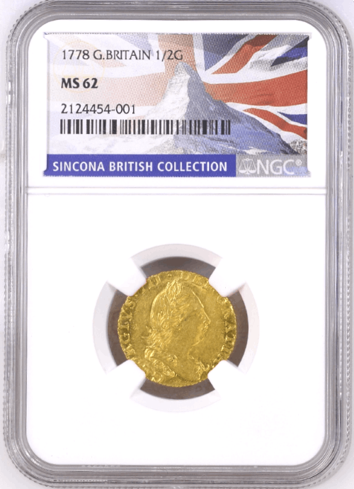 【動画あり】【レア度3-R3】グレートブリテン 1778年 ジョージ3世 1/2ギニー金貨 NGC-MS62
