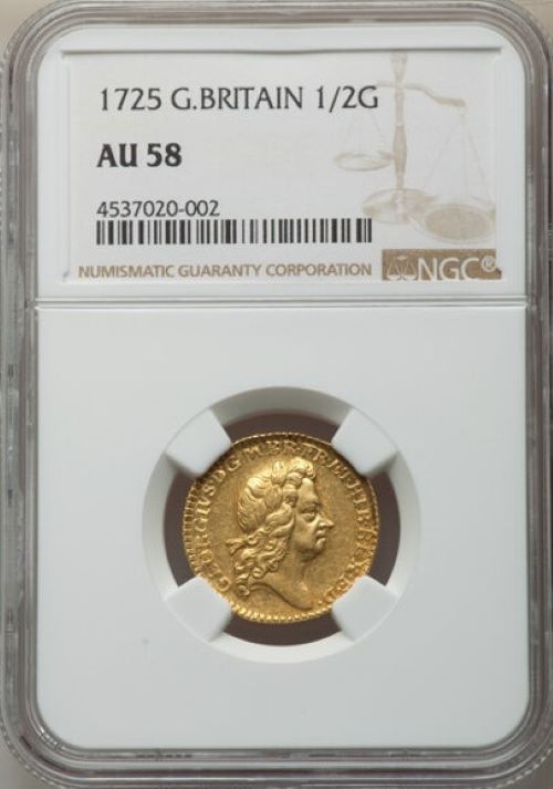 【動画あり】グレートブリテン 1725年 ジョージ1世 1/2ギニー金貨 NGC-AU58