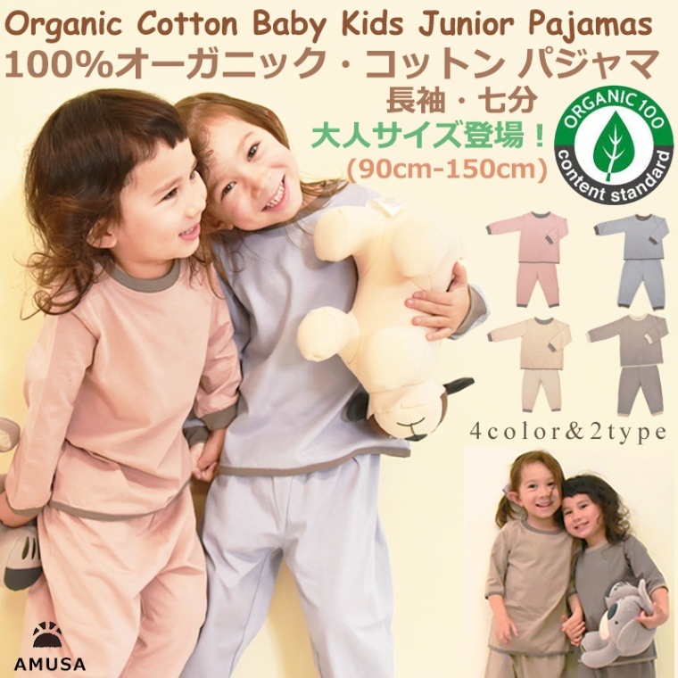 OCS認証 高品質 オーガニックコットン100% 熟睡パジャマ 七分 長袖 パジャマ キッズ ベビー 女の子 男の子 綿100% ...
