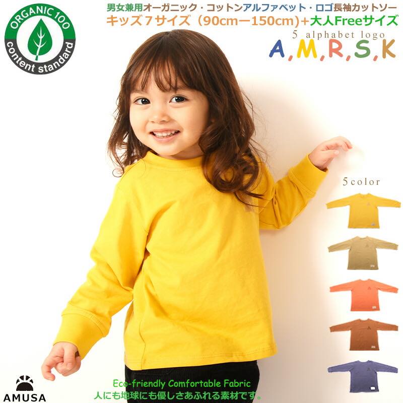 【Aロゴ】OCS認証 高品質 オーガニックコットン100% A ロゴ長袖Tシャツ ロンティー ロンT カットソー ベビー キッズ ...