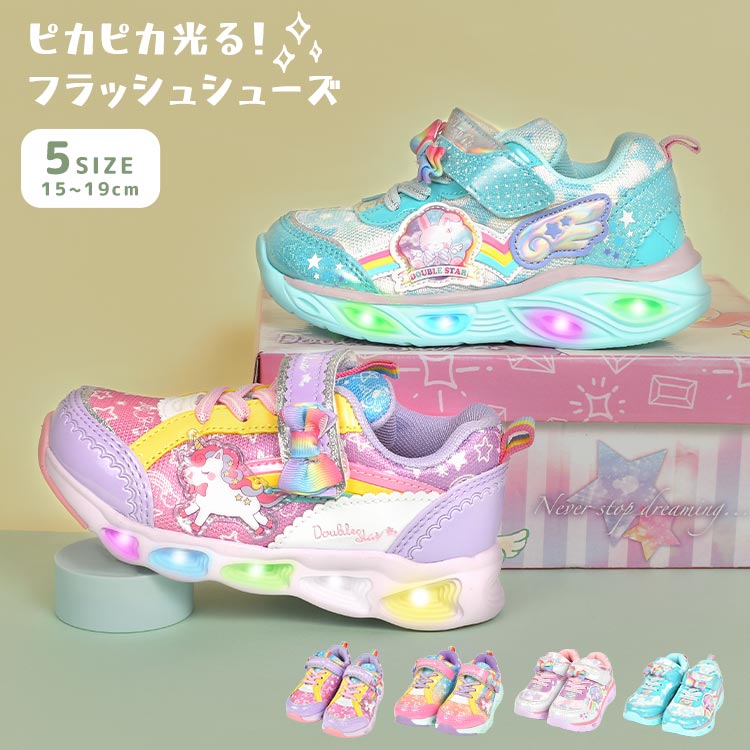 光る靴 スニーカー キッズ 女の子 15 16 17 18 19 cm 子供 子ども キッズシューズ 靴 軽量 可愛い おしゃれ ...