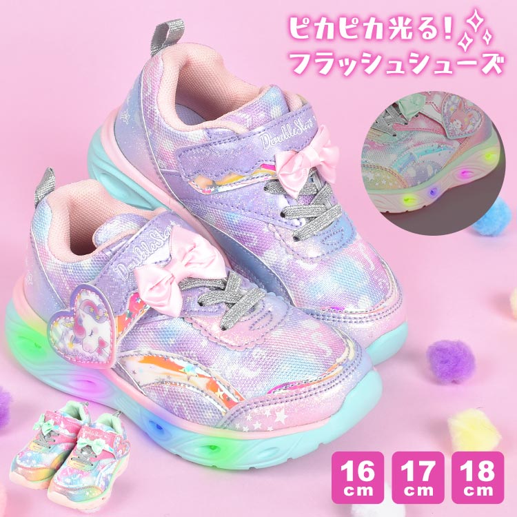 女の子 スニーカー 光る靴 16 17 18 cm ピンク パープル キッズ シューズ 子供靴 軽量 おしゃれ キラキラ ピカピカ...