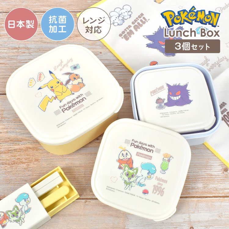ランチボックス 入れ子 3P セット 弁当箱 ポケモン 女子 シール容器 3個セット レンジ対応 日本製 抗菌 お弁当箱 女の子 ...