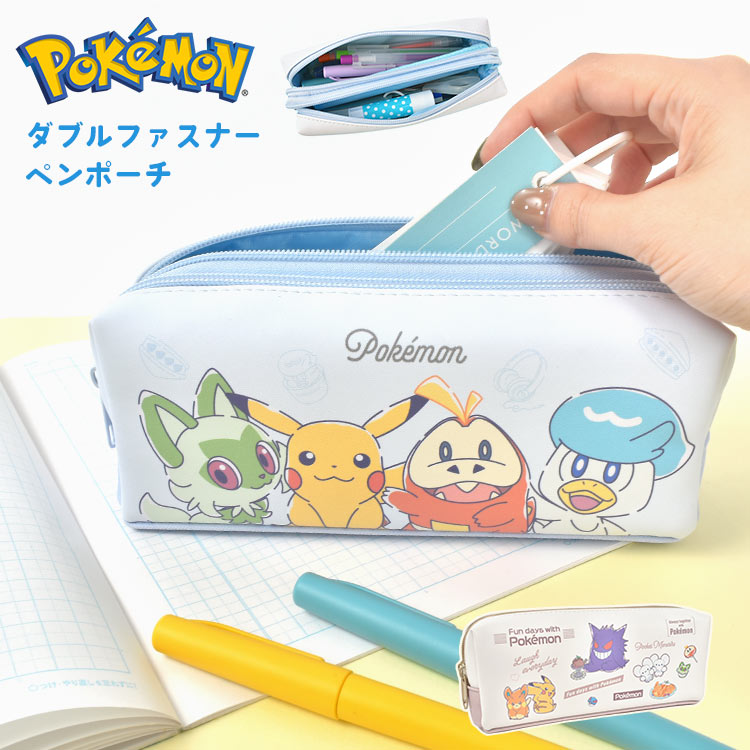 ペンケース ポケモン 大容量 かわいい ペンポーチ 2ルーム ピカチュウ 小学生 高学年 子供 女の子 女子 キャラクター 水色 ...
