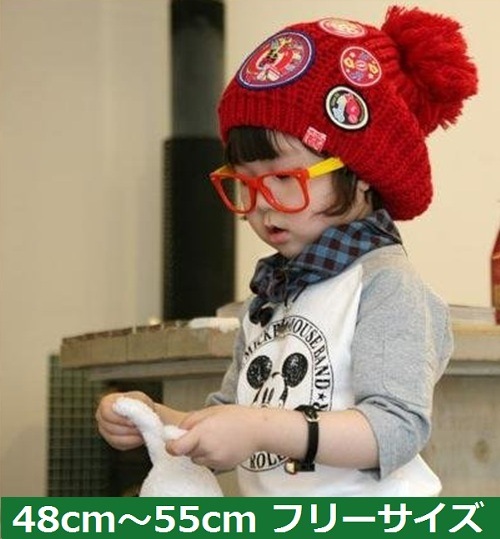 【医療用帽子】【キッズ】 大杉ニットルームキャップ子供用:4型 エンジ