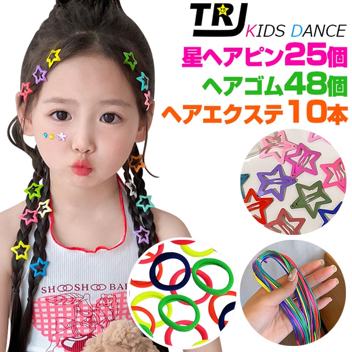 正午まで当日発送(土日祝除く) ヘアアクセサリー3種セット 星ヘアピン25個 カラーヘアゴム48本 ヘアエクステ10本 大容量 子...