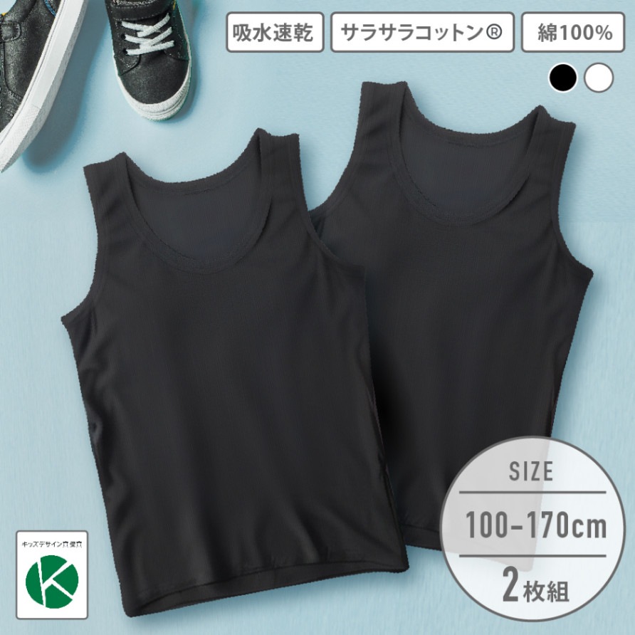 販売数60万セット突破!【男の子】キッズジュニア ランニング 2枚組 ブラック/カノコ編み 100~170cm【綿100%/サラサ...