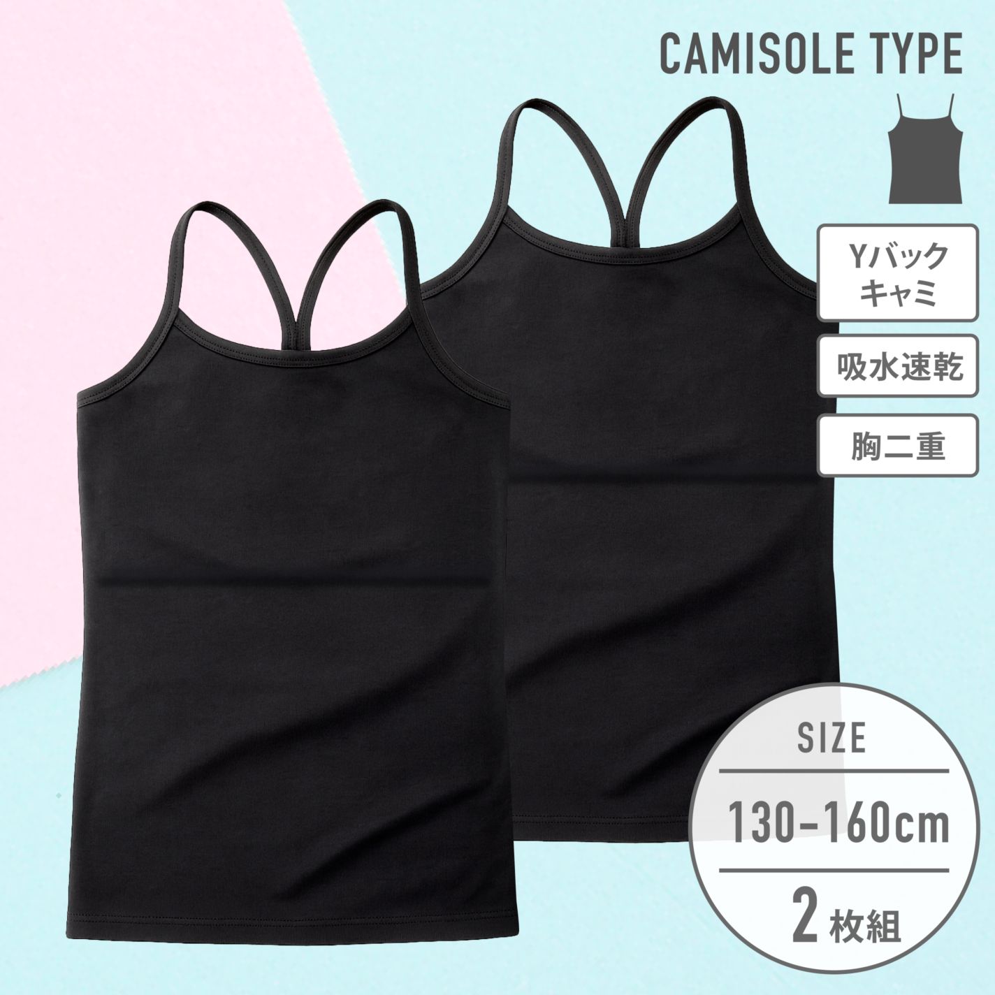 【女の子】モールドカップ付きキャミソール ブラキャミ 2枚組 150~165cm 胸二重【吸水速乾】